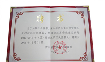 5月,為加強社會監督,推進全省工商行政管理系統的政風行風建設,四川省工商行政管理局聘請了2013-201...