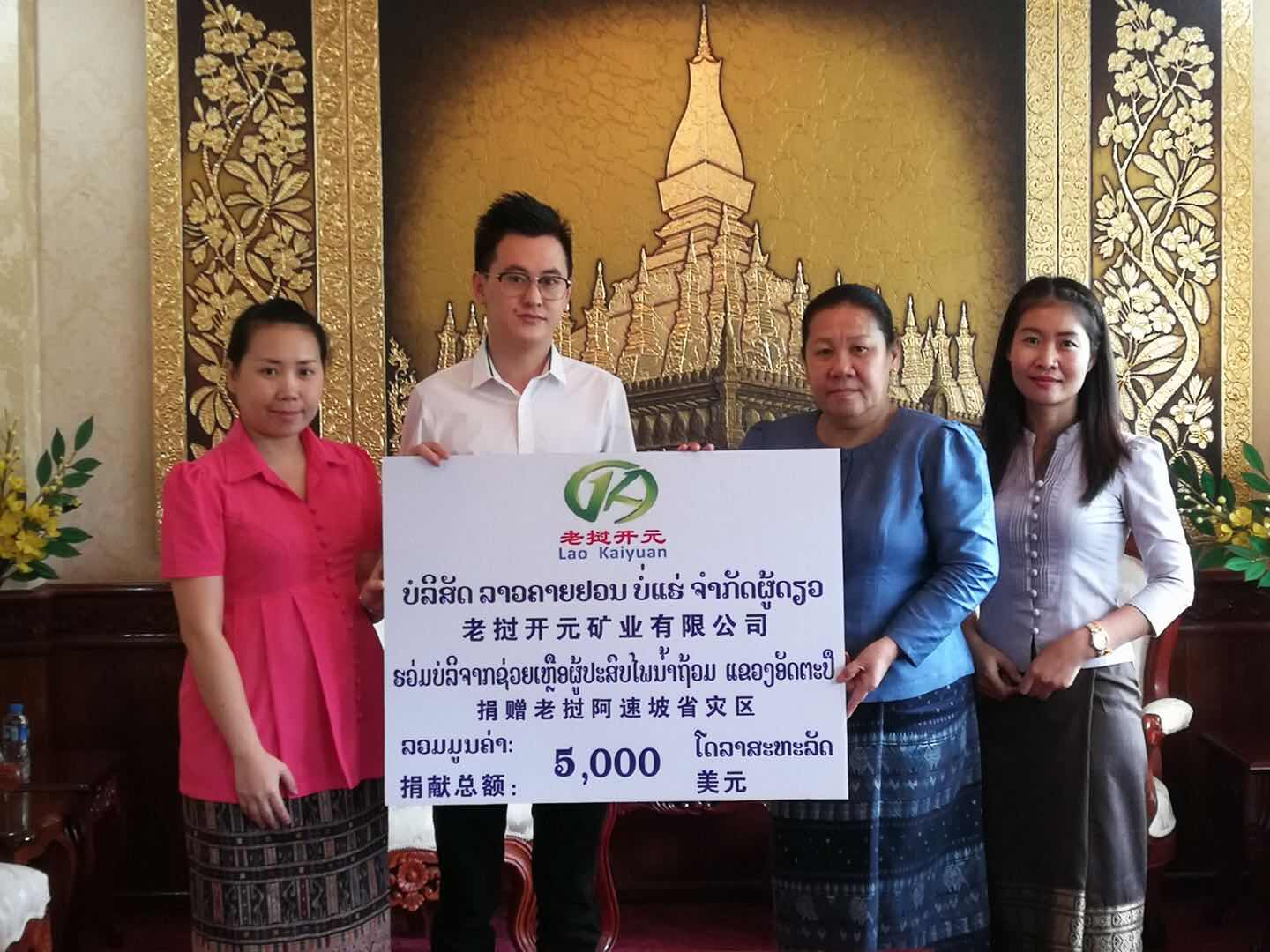 7月31日,萬象辦代表公司向阿速坡災(zāi)區(qū)人民捐助現(xiàn)金5000美金,并轉(zhuǎn)達了集團領(lǐng)導對災(zāi)區(qū)人民的關(guān)懷之情。公司現(xiàn)場也倡議全體員工進行捐助,截止8月1日,全體員工向甘蒙省和阿速坡省抗洪救災(zāi)捐助現(xiàn)金10,000,000基普。礦產(chǎn)能源部、甘蒙省政府對公司善舉表示感謝,頒發(fā)了榮譽證書,并對公司積極履行社會責任給予了高度評價。