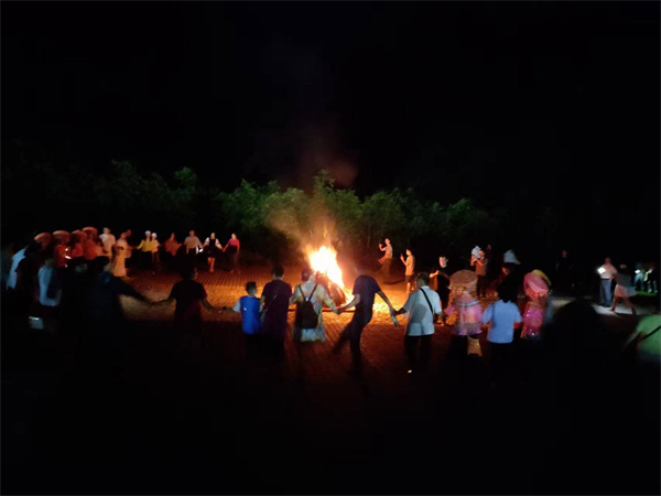 夜幕下的篝火晚會,把整臺晚會推到了高潮,考察團團員,和當地彝族,傈僳族居民一起手牽手載歌載舞,大手牽小手,架起了一道友誼的彩虹,轉眼間,兩個多小時的晚會即將結束,大家依依不捨,短暫一天?;险鎸嵉捏w驗 已經讓一些人的心留在了?;?,讓更多人的心涌動在?;?hellip;…